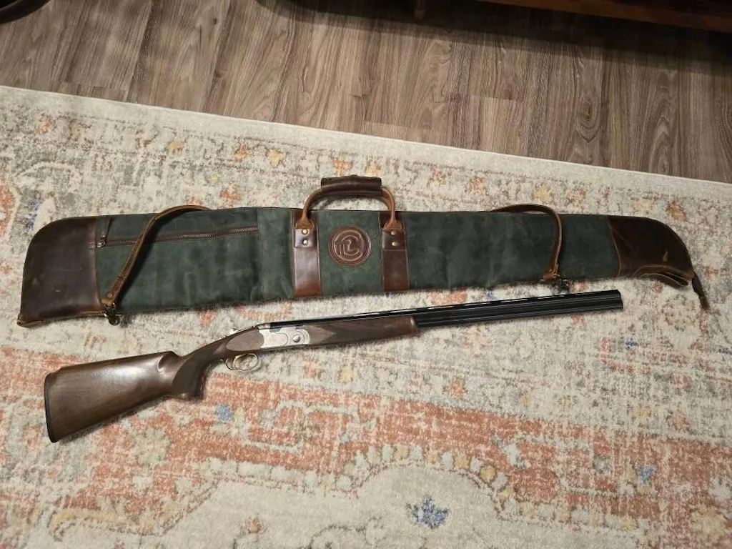 Luxury Shotgun Case made out of real leather and canvas lining. Two color leather used brown / green